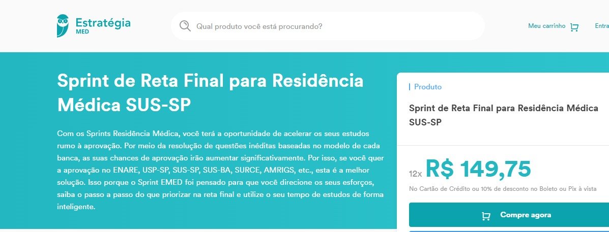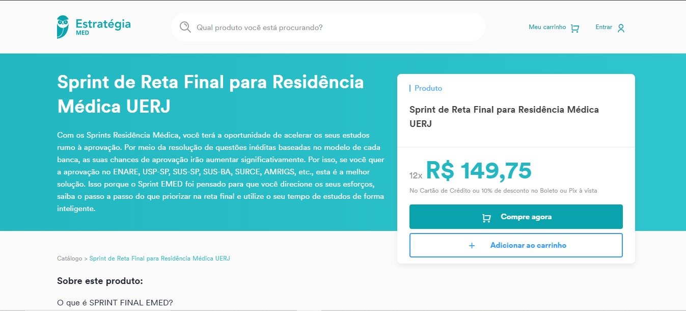Oferta para sua primeira compra no curso Sprint de Reta Final para Residência Médica UERJ